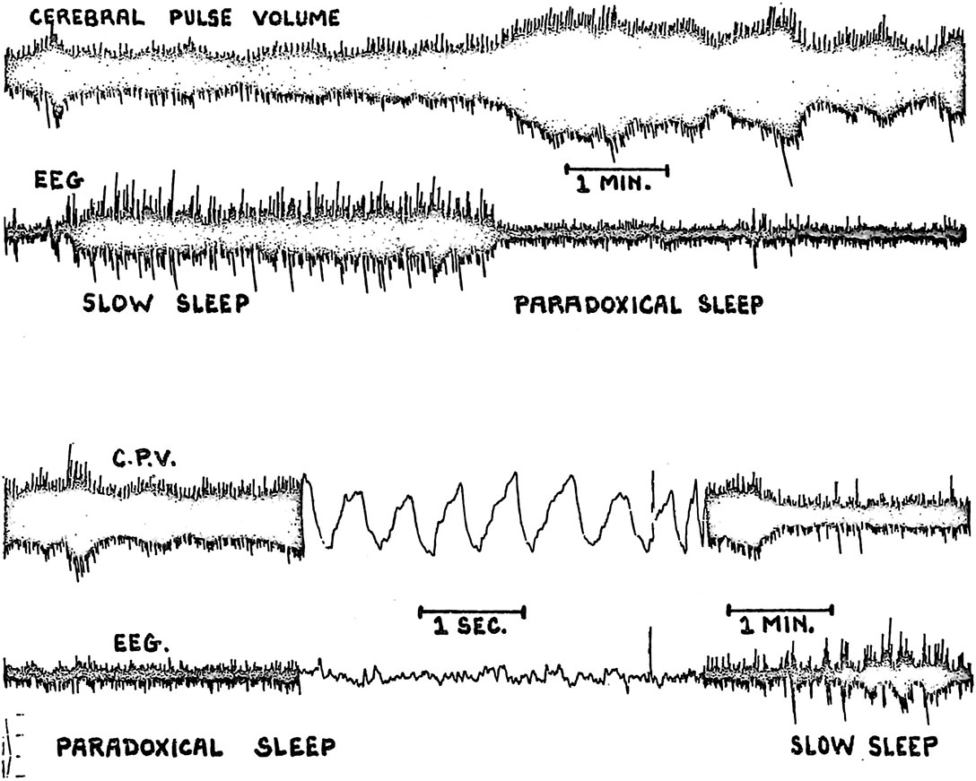Kanzow, E. Changes in blood flow of the cerebral cortex and other vegetative changes during paradoxical sleep periods in the unrestrained cat. In M. Jouvet (Ed.), Neurophysiologie des etats de sommeil. Paris: Centre National de la Recherche Scientifique, 1965. Pp.231-240.